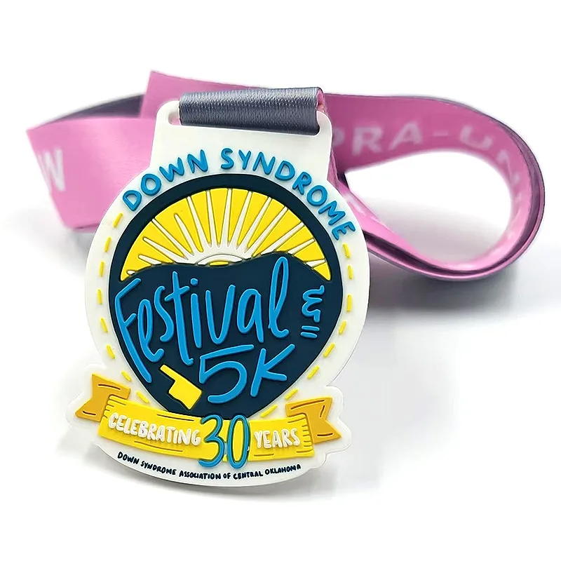 Custom Colorful Running Run Marathon Sport Pvc Rubber Medal With Custom Logo Ribbon Lanyard